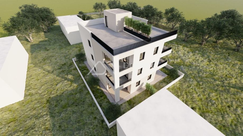 U prizemlju se nalaze stanovi sa vrtovima, na prvom katu smješteni su po 2 stana sa natkrivenim terasama, a na drugom katu nalaze se dva penthouse apartmana s krovnim terasama sa kojih se pruža prekrasan panoramski pogled na more i zadarski arhipelag.