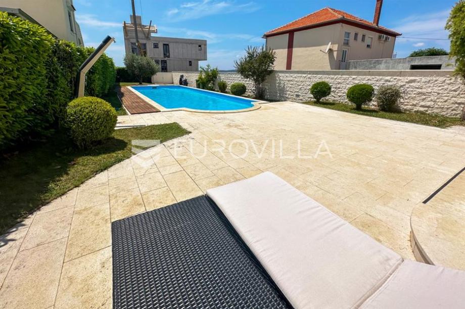 Zadar, Sukošan, prekrasna kuća s bazenom i lijepom okućnicom, NKP 185 m2.Prostire se na zemljištu od 666 m2.Vila se prostire na dvije etaže sa dvije zasebne stambene jedinice.Prizemlje se sastoji od ulaznog prostora, otvorenog koncepta kuhinje, blagovaonice i dnevnog boravka sa izlazom na...Za ovu nekretninu kontaktirajte agenticu na broj telefona +385 91 538 5360.Više na Eurovilla.hr, ID: 212549Direktan link: https://eurovilla.hr/nekretnina/zadar-sukosan-prekrasna-vila-s-bazenom-i-pogledom-na-more/212549/-----Zadar, Sukošan, beautiful house with a swimming pool and a nice garden, 185 m2.It covers a plot of 666 m2.The villa is spread over two floors with two separate residential units.The ground floor consists of an entrance area, an open concept kitchen, a dining room and a living room with access to... For this property contact our agent on telephone number +385 91 538 5360.More on Eurovilla.hr, ID: 212549Direct link: https://eurovilla.hr/en/property/zadar-sukosan-beautiful-villa-with-pool-and-sea-view/212549/...