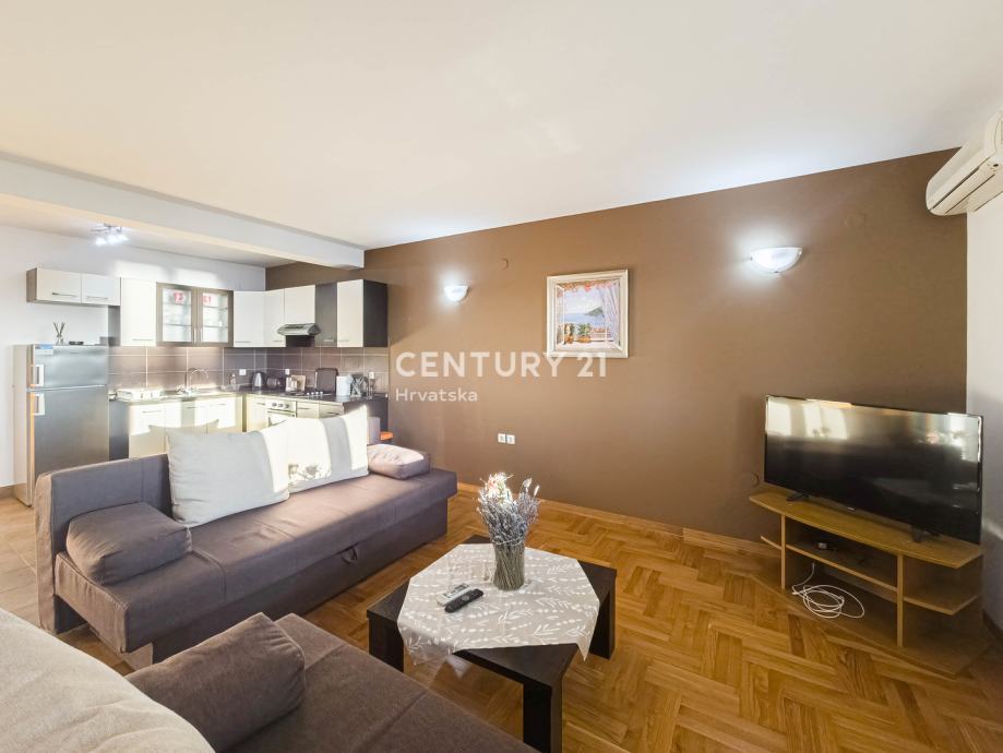 Nalazi se u mirnoj ulici svega cca 200 m do mora i uređene plaže u blizini svih potrebnih sadržaja za cijelogodišnji boravak.