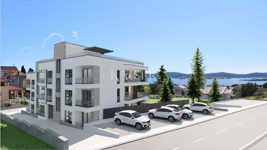 Stan se nalazi u okruženju obiteljskih kuća i borove šume te nudi prekrasan panoramski pogled na more i otoke. Zahvaljujući velikim staklenim stijenama, interijer je ispunjen prirodnim svjetlom tijekom cijelog dana. Kvalitetni parket, elegantna keramika s podnim grijanjem te klimatizacija u svakoj prostoriji osiguravaju vrhunsku udobnost tijekom cijele godine. Prodavatelj nudi mogućnost narudžbe i izrade namještaja po mjeri.