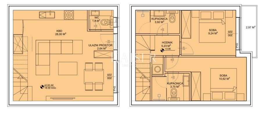 Dvije kupaonice (3.75 m² i 3.92 m²)