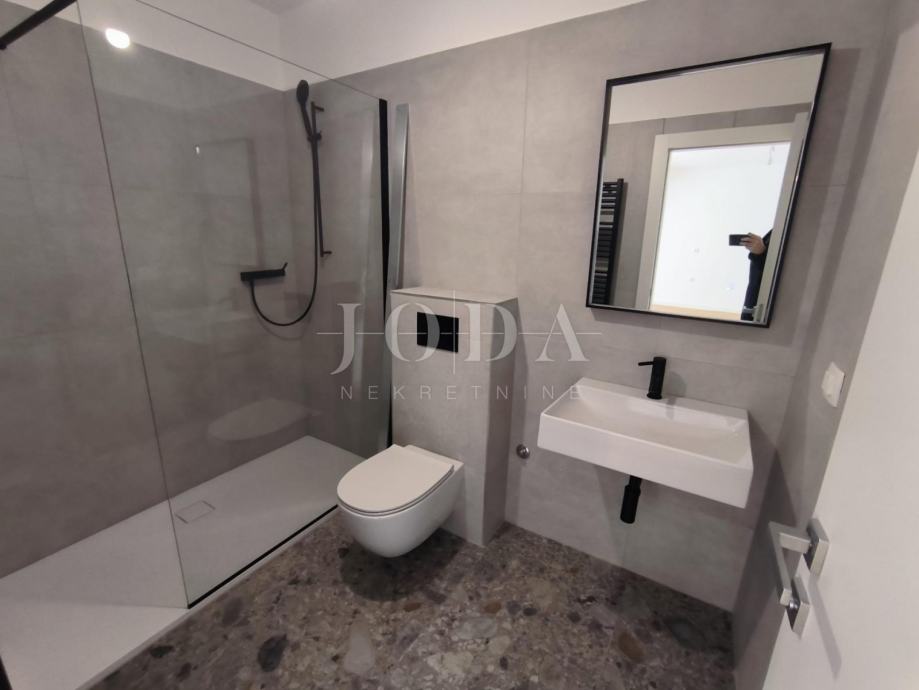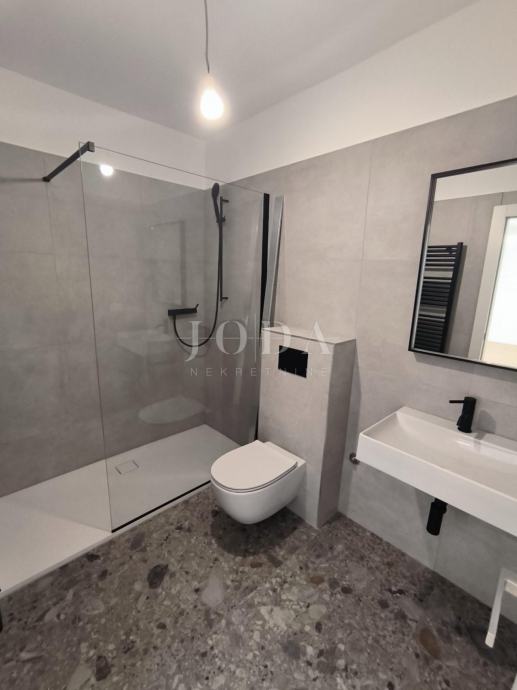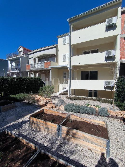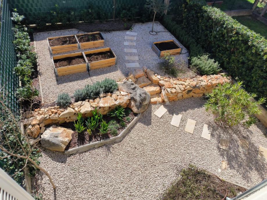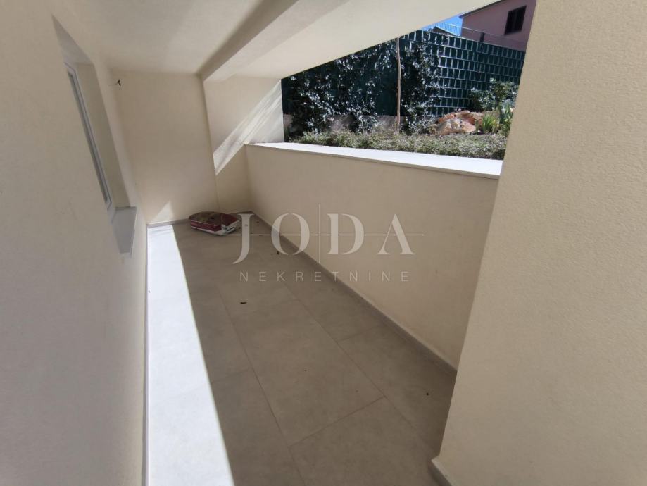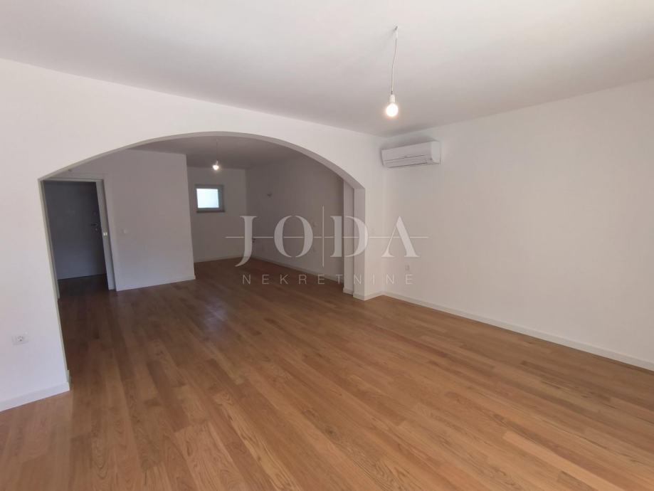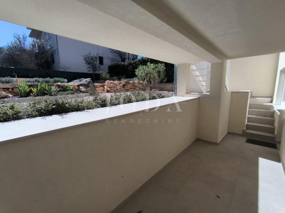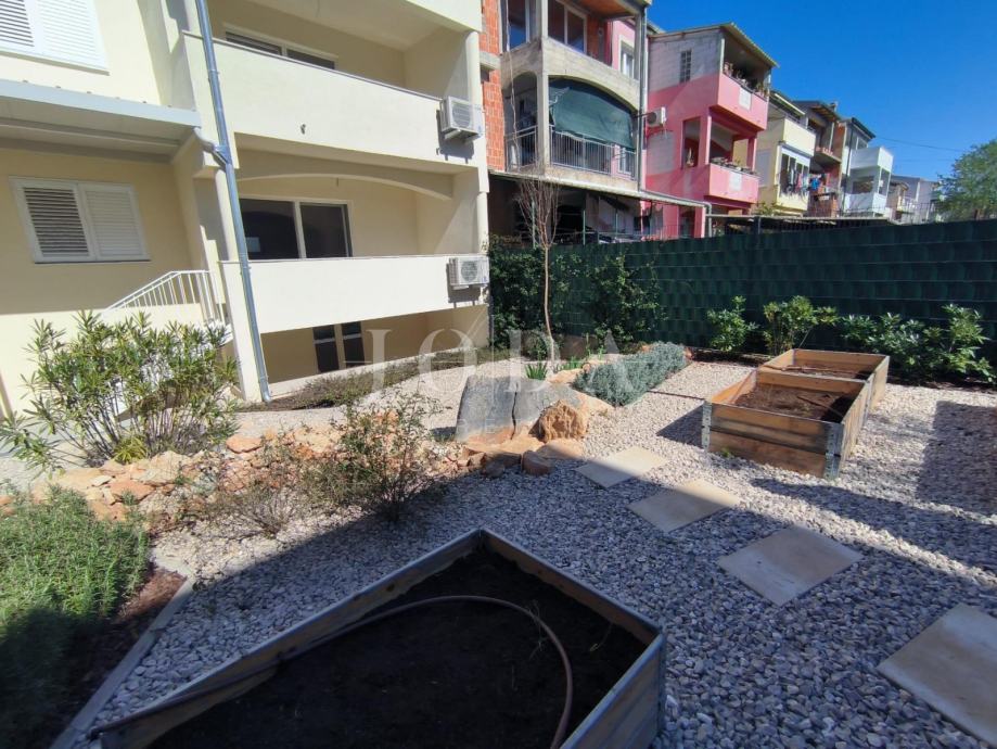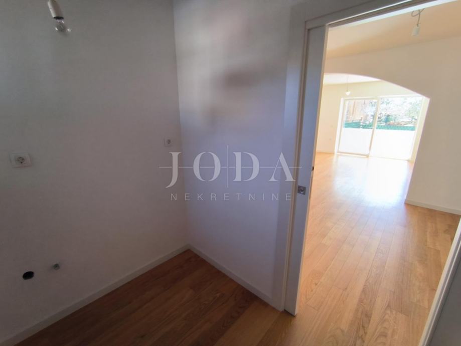 Prodaje se stan u novogradnji u prizemlju površine 152m2 koji se sastoji od hodnika, kuhinje s blagovaonom i dnevnim boravkom s izlazom na terasu s koje se spušta u unutarnji uređen vrt površine 90m2, 2 spavaće sobe i kupaonice.