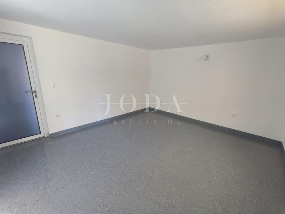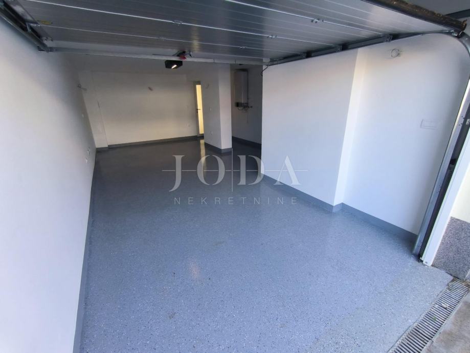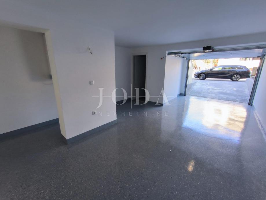 Stanu pripada garaža u suterenu zajedno s velikom prostorijom za dodatnu sobu ili dnevni boravak/kuhinja i wc-om iz koje se izlazi u vrt.