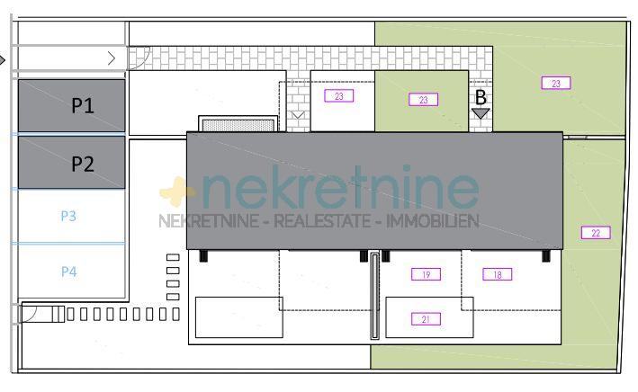 Natkriveno parkirno mjesto (15,12 m²) i vanjsko parkirno mjesto (15,74 m²)