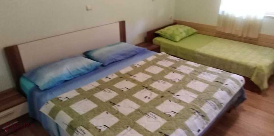 Sastoji se od: dvije spavaće sobe, dnevnog boravka + kuhinja + blagovaona, hodnika, kupaonice i balkona.