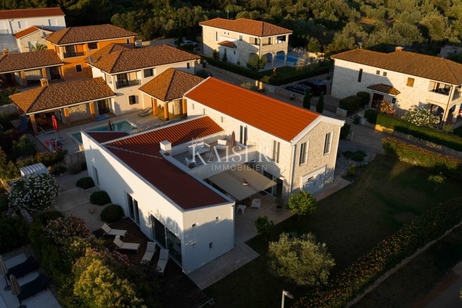 Moderna, prostrana, puna otočkog duha, vila je smještena na zelenoj poziciji iznad uvale Muline u neposrednoj blizini dvorca Califfi (Beršić) .