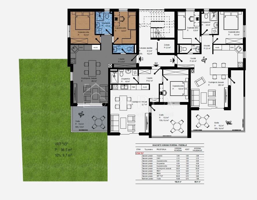 S1 - prizemlje, dvosoban stan s vrtom, 86,03 m2 – 292.502,00 €