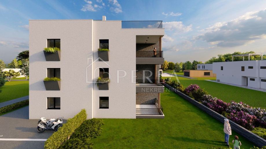 Na mirnoj lokaciji nalazi se ovaj novi projekt novogradnje s 9 stambenih jedinica raspoređenih kroz 3 nadzemne etaže: prizemlje te dva kata.