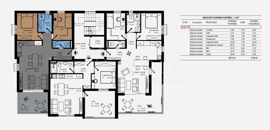 S5 - 1. kat, jednosoban stan, 60,24 m2 – 204.816,00 €