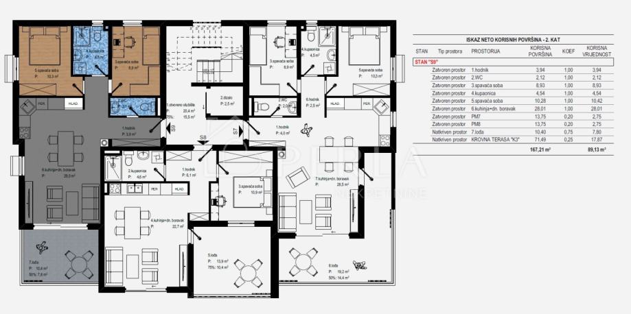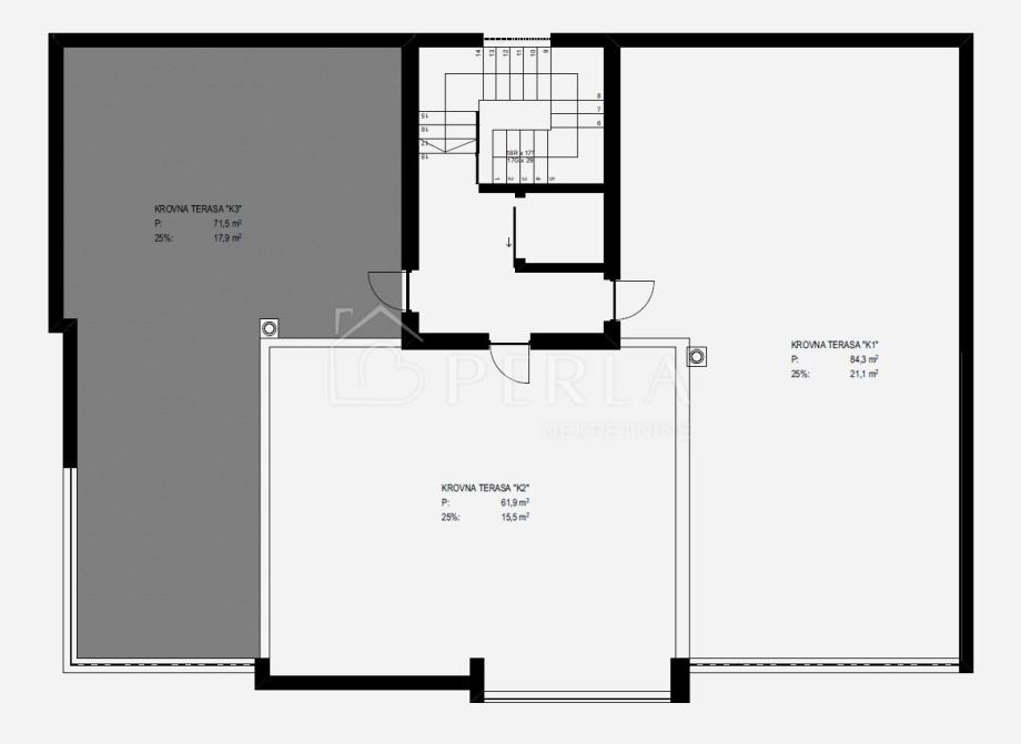 - Krovna terasa (71,49 m2 bruto - 17,87 m2 netto)