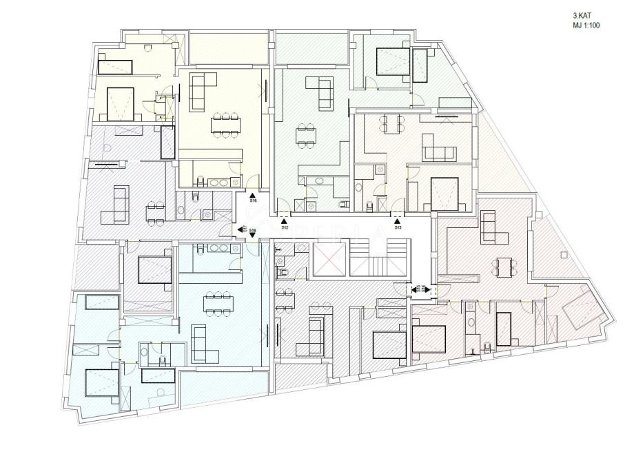 U novom projektu stambene zgrade sa 18 stanova na tri kata sa liftom i garažom, ostavama stanara te krovnim terasama, prodaje se na trećem katu dvosoban stan oznake S16.