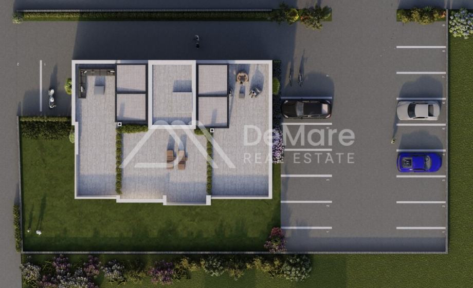 Objekt se nalazi na mirnoj lokaciji, 5 minuta vožnje (1800 m) od mora i plaže, i 2,5 km do centra grada Zadra - poluotoka, a u blizini je svih potrebnih sadržaja (supermarket, škola, vrtić, ljekarna, medicinska i dentalna ambulanta, caffe bar, parki i igralište) za ugodan i miran život.