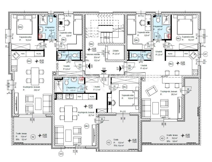ZADAR-VIDIKOVAC-NOVOGRADNJA-PENTHOUSE 76 m2 -Krovna terasa-2xParking (prodaja)