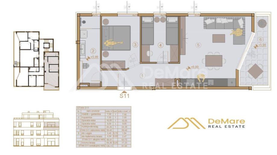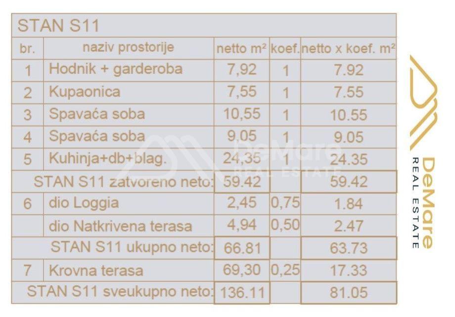 2. KAT S11 ≅ PENTHOUSE Stan s 2 spavaće sobe, natkrivenom i krovnom terasom