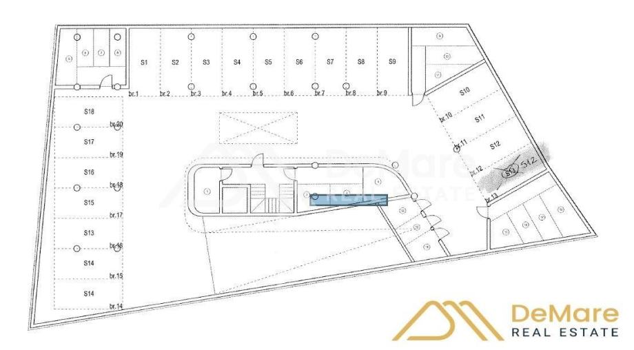 Zgrada se sastoji od podruma u kojem su ostave za stanare i podzemna garaža, zatim prizemlja u kojem su poslovni prostori i tri kata gdje se nalaze 18 modernih i komfornih stanova za prodaju. Stanovi su različitih veličina i rasporeda, a svaki stan ima lođu ili terasu s pogledom na more ili grad.