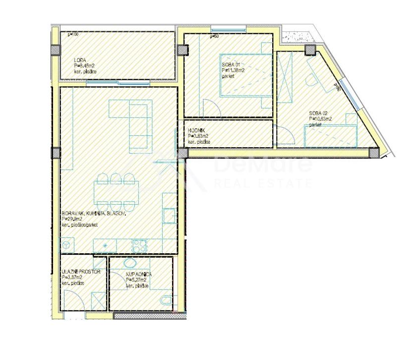 ∞ dnevnog boravka s kuhinjom i blagovaonicom (29,90 m2) iz koje se izlazi na