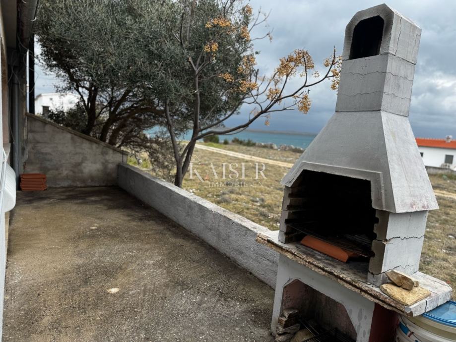 Stražnja terasa (8.10 m2): Polu-natkrivena terasa koja pruža pogled na more i Velebit, savršeno mjesto za uživanje u prirodnom okruženju.