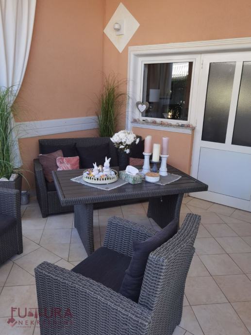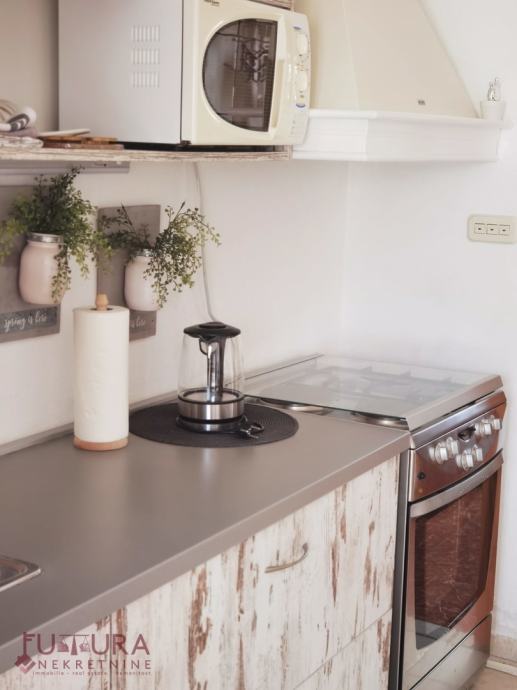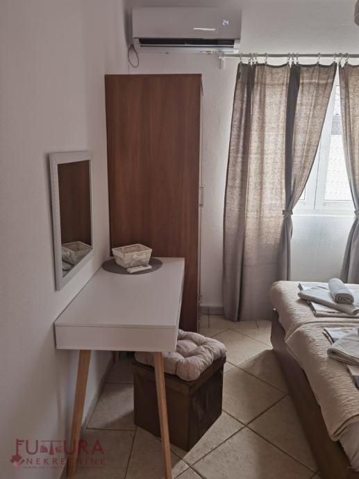 - prizemlje dva apartmana od 50 m2 svaki: dvije spavaće sobe, kuhinja + blagovaona, dnevni boravak, kupaona i terasa.