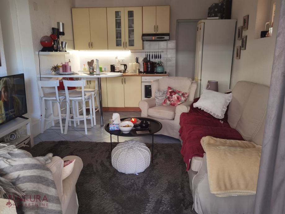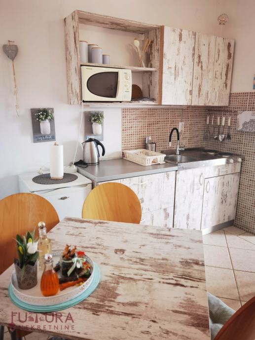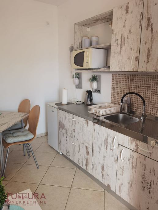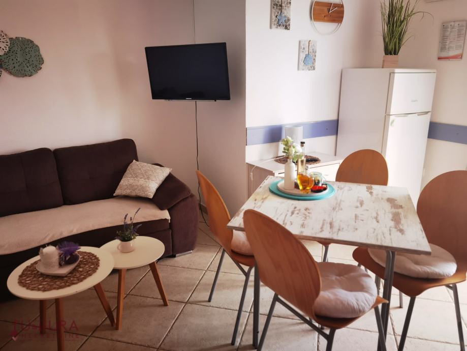 - katu četiri apartmana od 35 m2 svaki: jedna spavaća soba, kuhinja + dnevni boravak, kupaona i terasa.