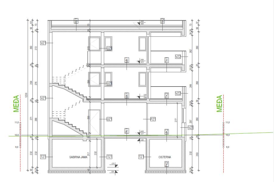 Nosivu konstrukciju stambene zgrade čine zidovi od armiranog betona i blok opeke debljine 25 cm