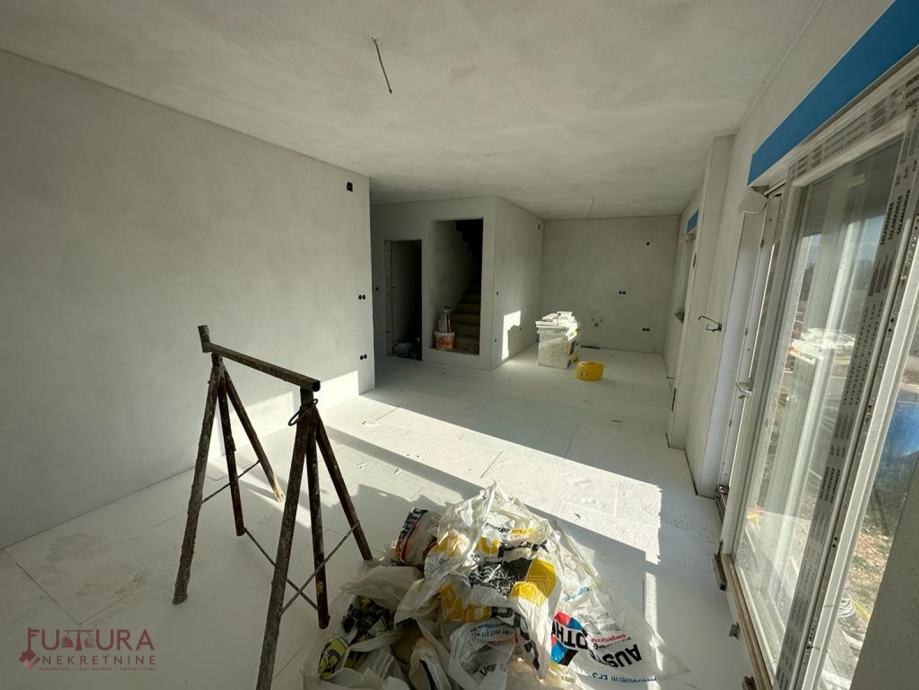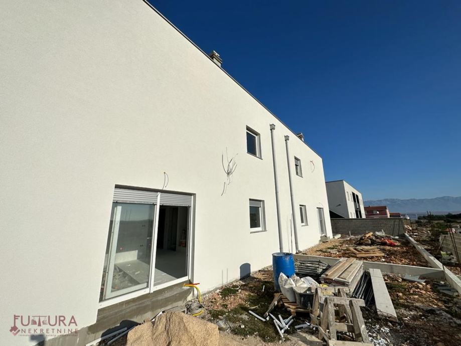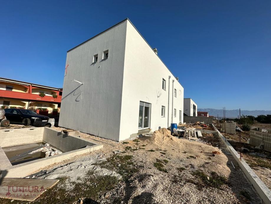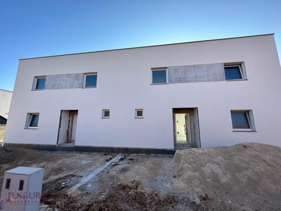 Zadar - Vir (Straža), prodaje se dvojna kuća katnica od 143 m2 stambene površine i 206 m2 okućnice izgrađena 2022 godine, kvalitetna gradnja, zidana kuća (beton, opeka), debljina termoizolacije 10 cm, kvalitetna keramika, itd...