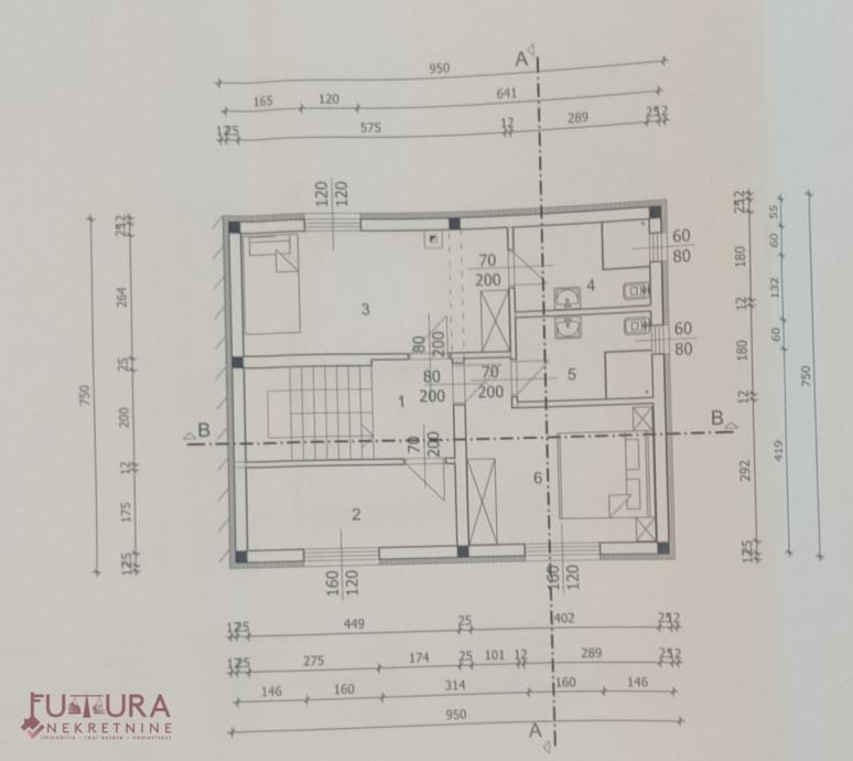 - kat: dvije spavaće sobe, dvije kupaonice i ostava.