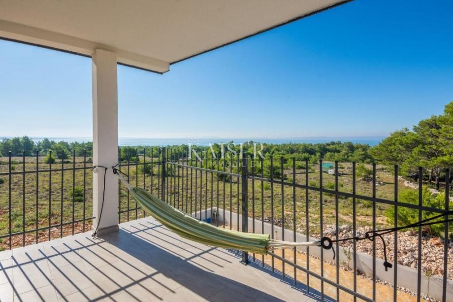 Posebnu vrijednost ovoj vili daje uređena okućnica s privatnim bazenom površine 24 m² (6 x 4 m), vanjskim tušem, ležaljkama i roštiljem – savršeno mjesto za opuštanje i druženje. Dodatni ugođaj pružaju dvije natkrivene i namještene terase (u prizemlju i na katu), svaka površine 12 m², s prekrasnim otvorenim pogledom na more, okolne otoke i netaknutu prirodu.