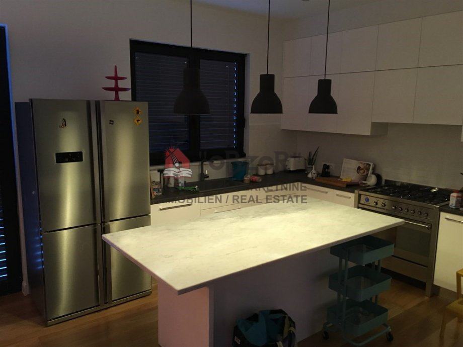 Prodaje se kompletno namještena samostojeća obiteljska kuća(katnica) modernog stila. Kuća se sastoji od podruma, prizemlja i kata. U prizemlju se nalazi kuhinja s blagavaonom i dnevnim boravkom koji imaju izlaz na otvorenu terasu površine cca.60m2. Također se u prizemlju nalazi kamin, toalet, unutarnje stepenište koje omogućava pristup katu i podrumu u kojem se nalazi kotlovnica s ostavom. Površina podruma iznosi cca.35m2. Na katu se nalaze tri dječje spavaće sobe, hodnik, kupatilo s toaletom i jedna velika spavaća soba s vlastitim kupatilom i toaletom. Kuća ima podno grijanje-toplinska pumpa, sustav grijanja-klimatizacije i ventilacije, portafon, Alu-stolarija(troslojno staklo-plin), električne vanjske žaluzine. led rasvjeta(unutarnja i vanjska), sustav navodnjavanja okoliša, vanjski roštilj,…Također kuća je spojena na gradsku kanalizaciju. Super lokacija, blizina škola, vrtić, športski centar, trgovine, 20 minuta hoda do centra. Vlasništvo1/1. Sve dodatne informacije na upit.