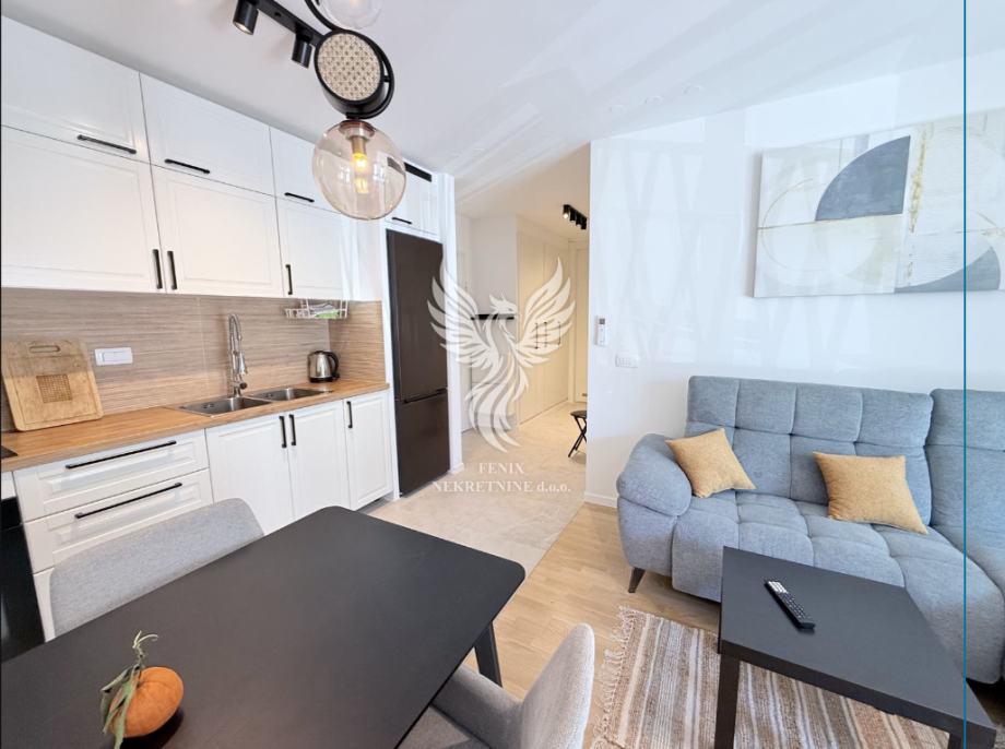 Stan se nalazi u izvrsnoj i kvalitetnoj zgradi, čija je gradnja završena 2024. godine. Zgrada ima -1 etažu na kojoj se nalaze parkirna mjesta, te lift. Sam stan se sastoji od ulaznog prostora, kuhinje s blagovaonicom i dnevnim boravkom, hodnika, dviju spavaćih soba, kupaonice i balkona. Kompletno je namješten i sav namještaj ostaje u stanu, te je uračunat u cijenu. Stan ima unutarnje površine oko 55 m2, a u ukupnu kvadraturu je uračunata i garaža s pripadajućim koeficijentom.