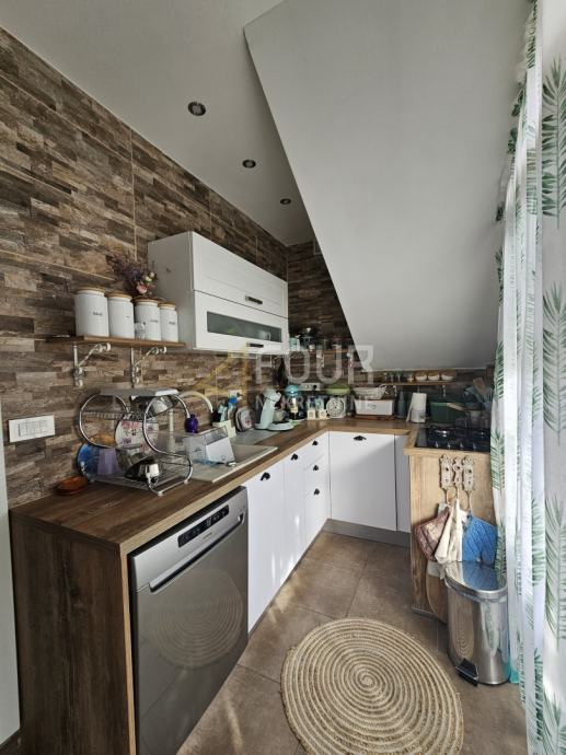 U prizemlju se nalazi komforan stan s jednom spavaćom sobom i dnevnim boravkom, dok kat obuhvaća dva odvojena stana — svaki s vlastitim izlazom na terasu ili balkon. Kuća je adaptirana, a dodatno su obnovljeni krov i fasada. Opremljena je PVC stolarijom, klimom, kaminom, videonadzorom te solarnim panelima, što osigurava ugodnost i niže troškove korištenja.