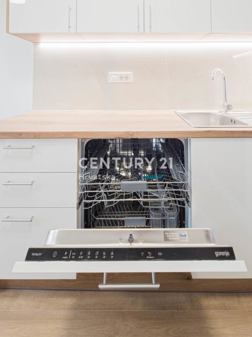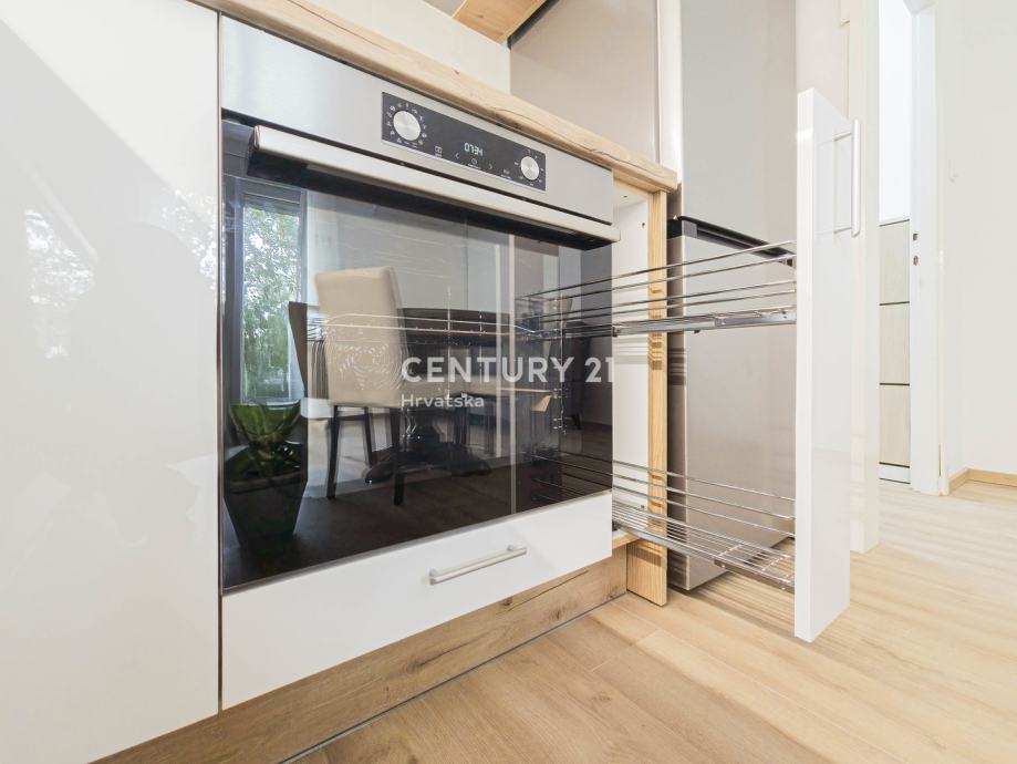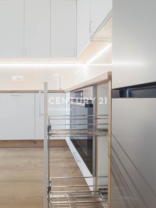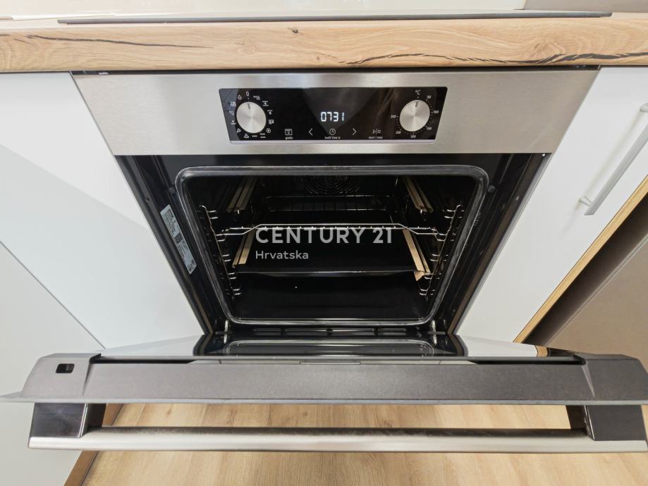 Prodaje se u potpunosti namješten sa ugradbenom kuhinjom po mjeri sa ugradbenom pećnicom, perilicom suđa, hladnjakom, blagovaonskim stolom i stolicama, sofom u dnevnom dijelu, 2 opremljene spavaće sobe sa novim krevetima i madracima, ormarima.