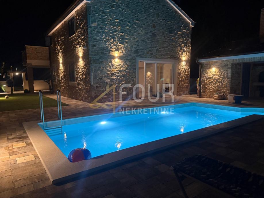 Okućnica od 242 m2 oaza je za uživanje na otvorenom, s privatnim bazenom koji se grije dizalicom topline, roštiljem okruženim lavandom i praktičnom vrtom te vrtnom kućicom. Ova nekretnina savršena je za obiteljski život ili za odmor u blizini mora, a moguć je i najam za dodatnu zaradu.