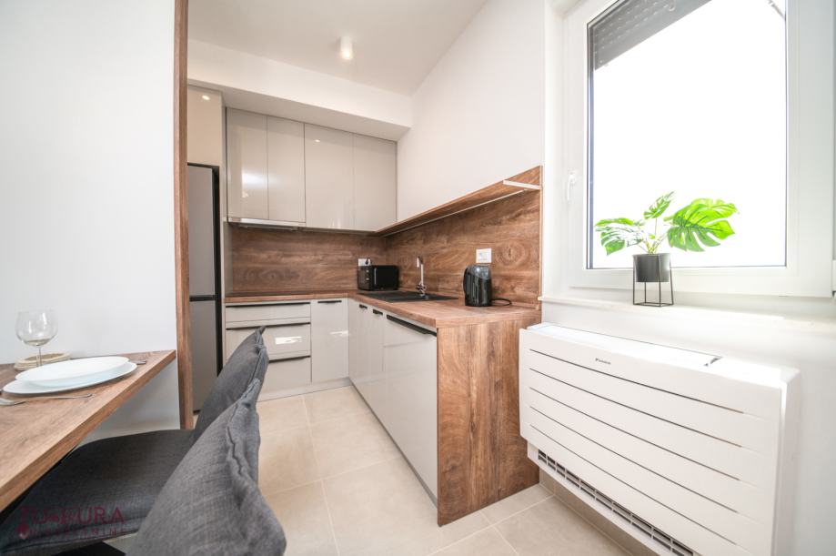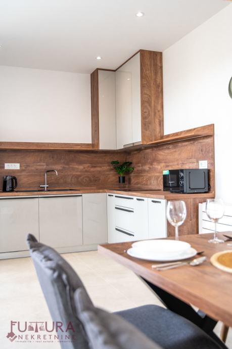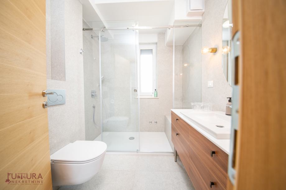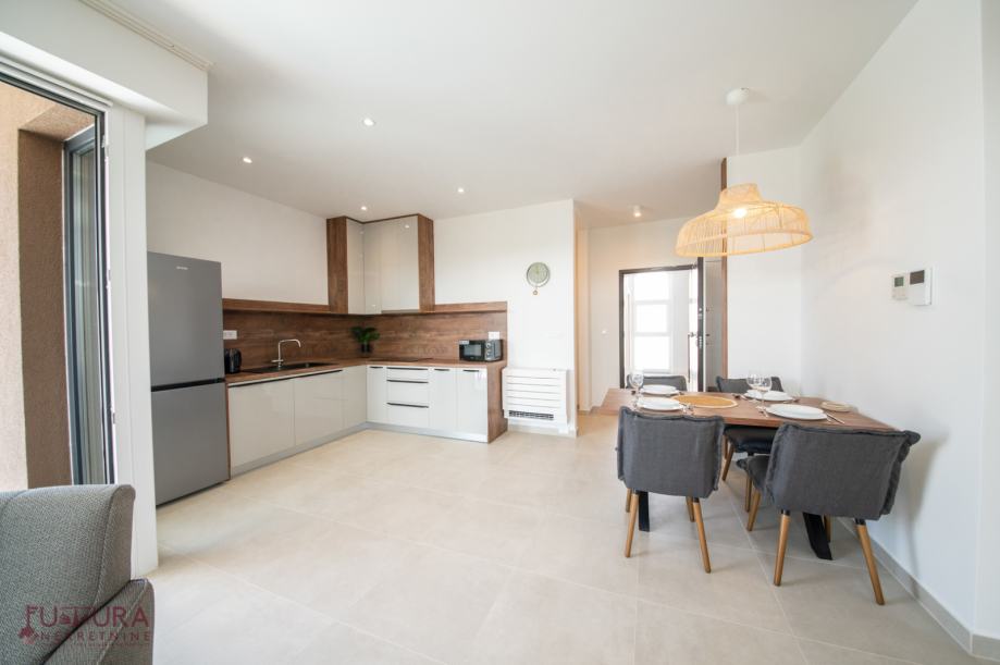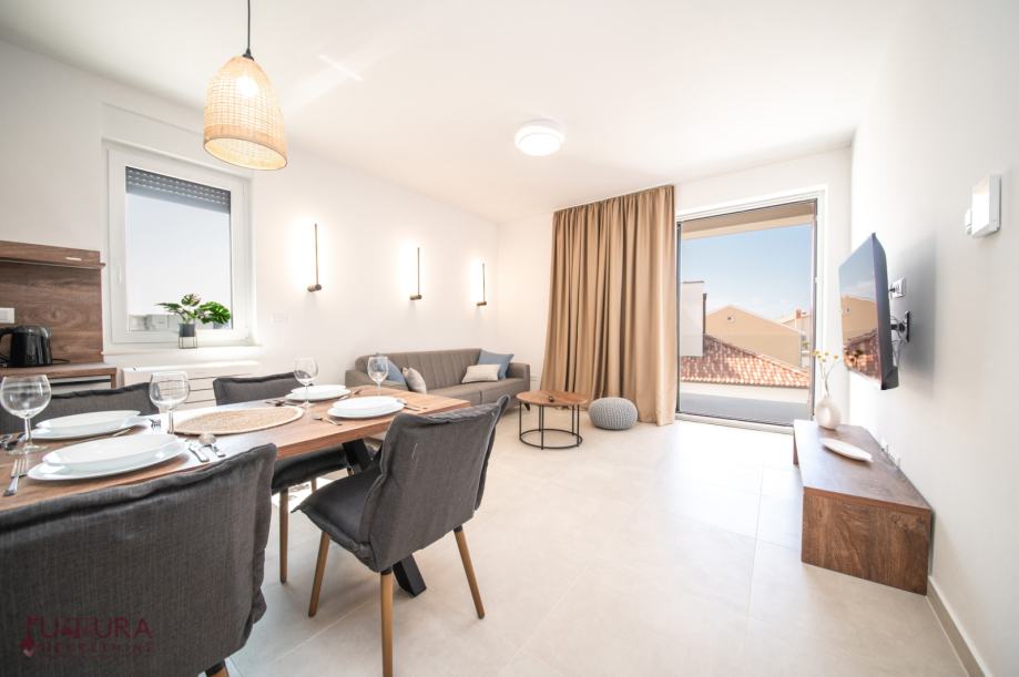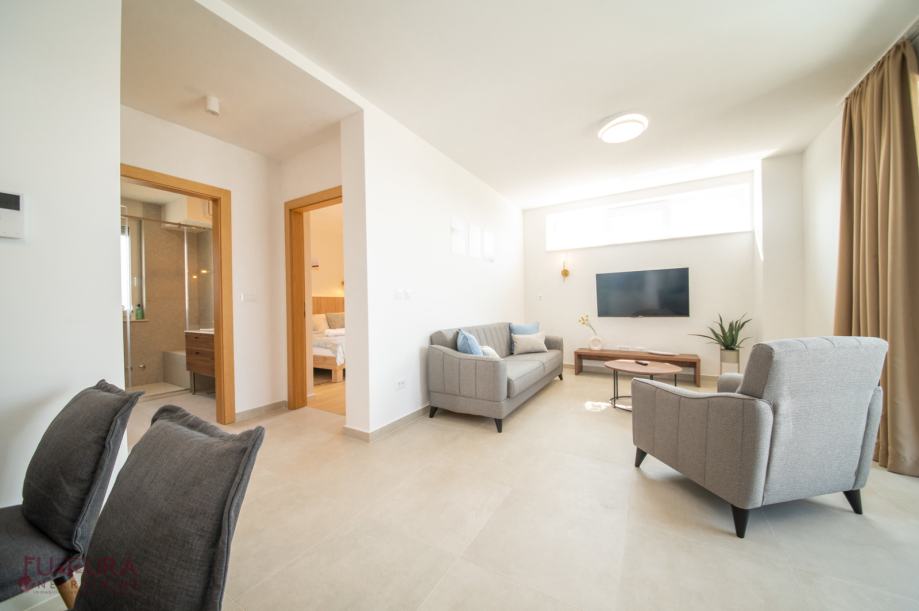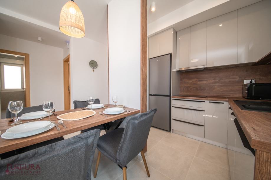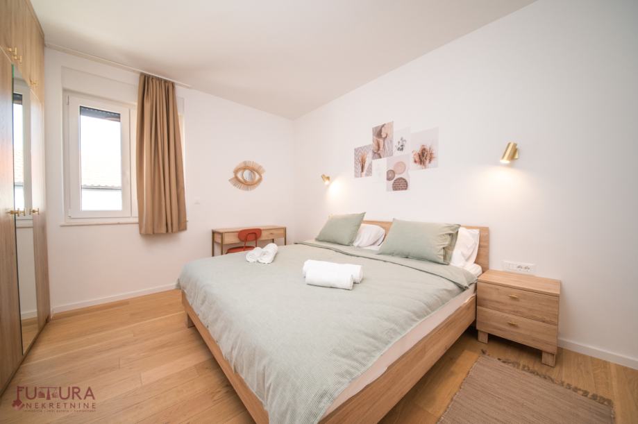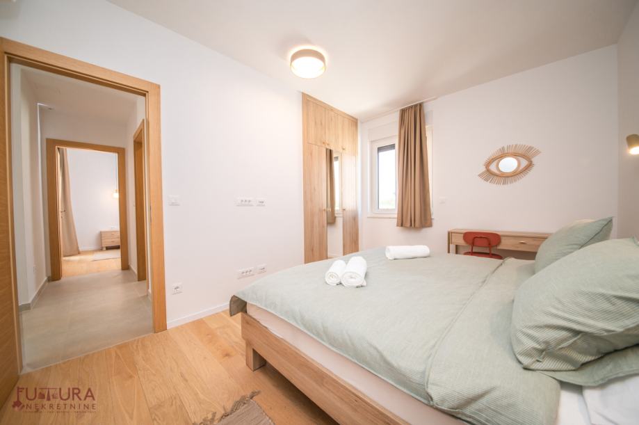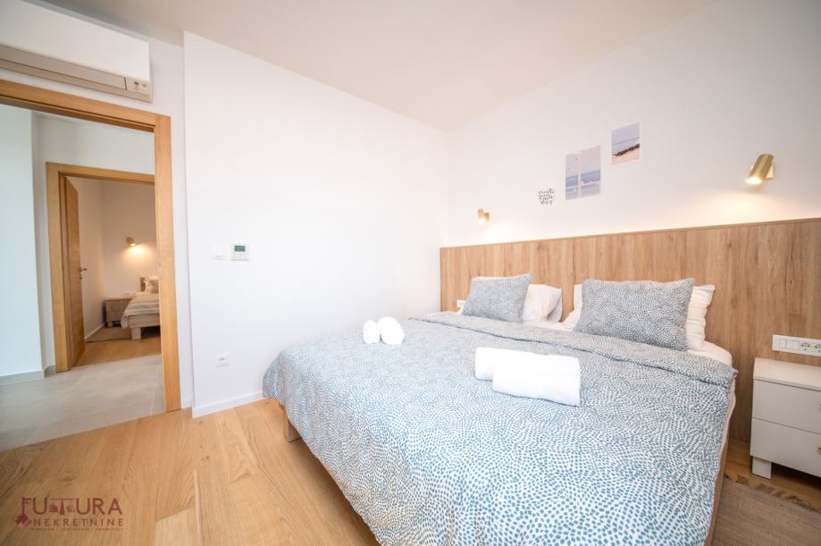 - apartman 2: dvije spavaće sobe, dnevni boravak + kuhinja + blagovaona, hodnik, kupaonica, wc i lođa.