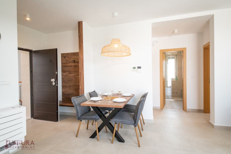 - apartman 1: dvije spavaće sobe, dnevni boravak + kuhinja + blagovaona, hodnik, kupaonica, wc i lođa.