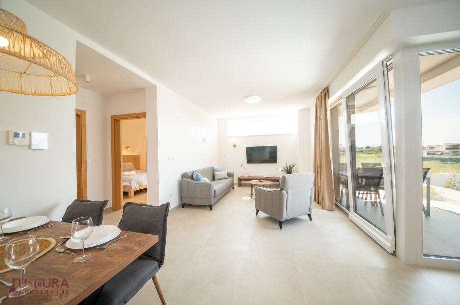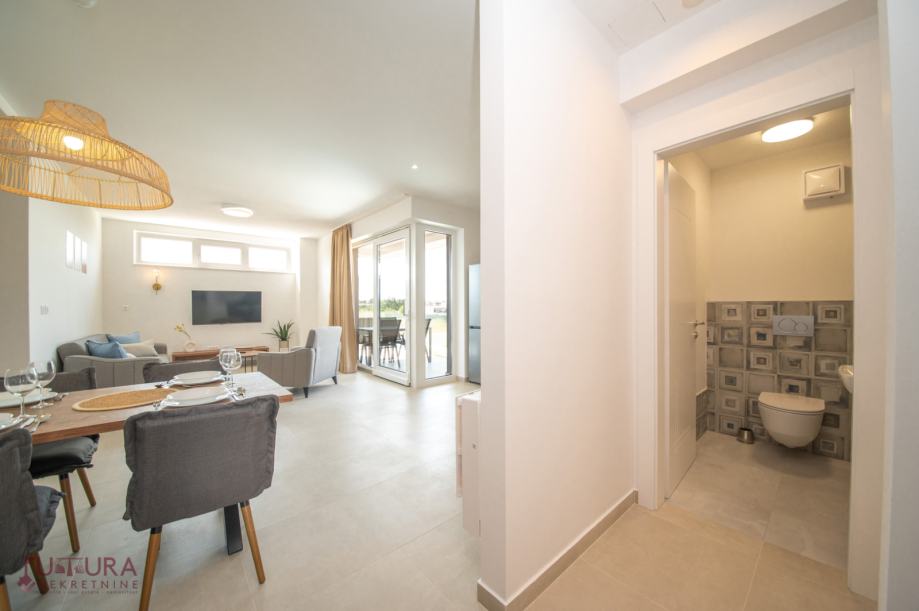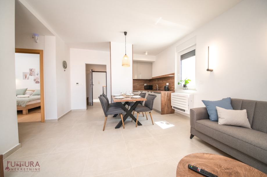 - apartman 3: dvije spavaće sobe, dnevni boravak + kuhinja + blagovaona, hodnik, kupaonica, wc i lođa.
