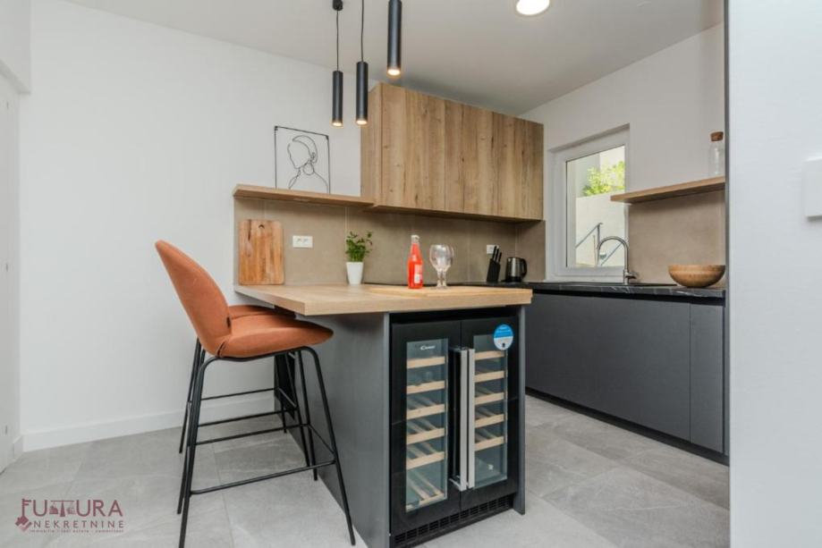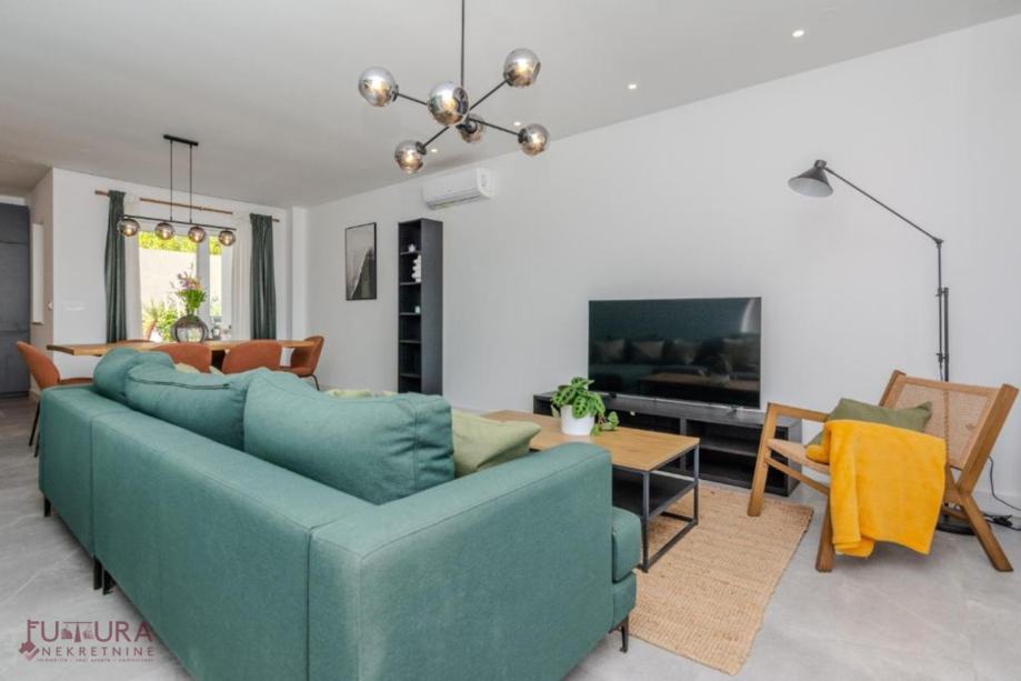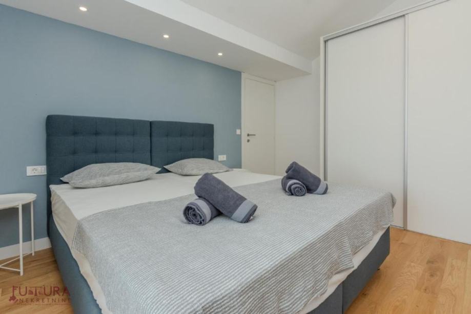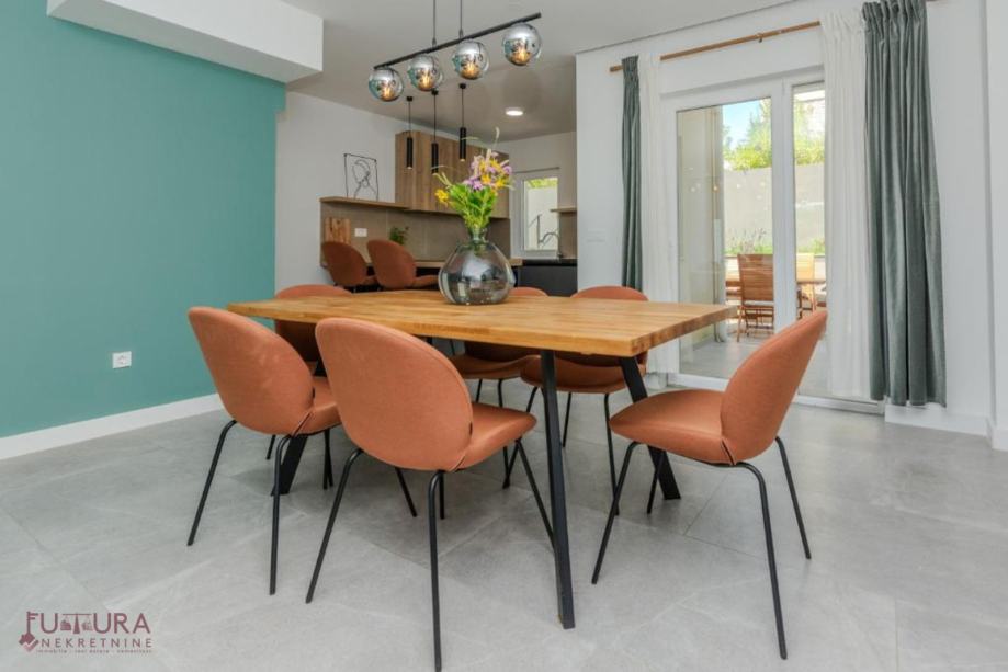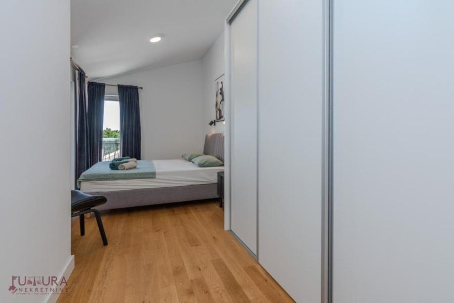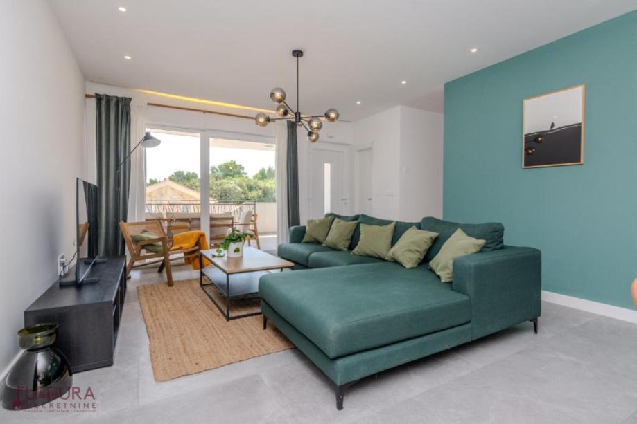 Zadar - Zaton, prodaje se dvoetažni trosobni apartman od 116,01 m2 stambene površine izgrađen 2022 godine, kompletno namješten.
