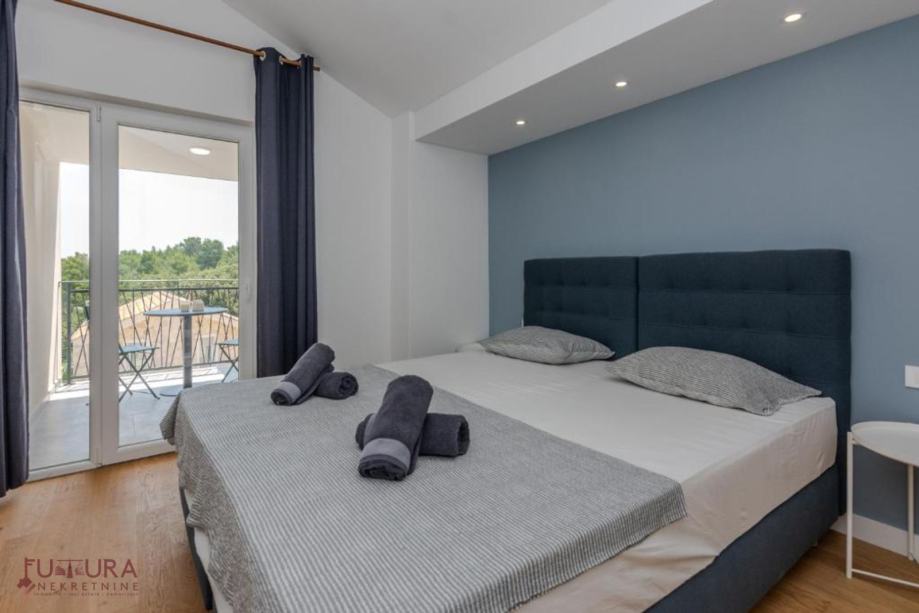 Nalazi se na odličnoj lokaciji 15 m udaljena od mora i 165 m od pješčane plaže, blizina svih potrebnih sadržaja za ugodan odmor i život!!!