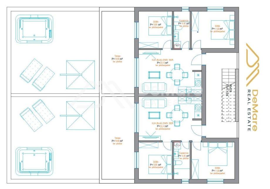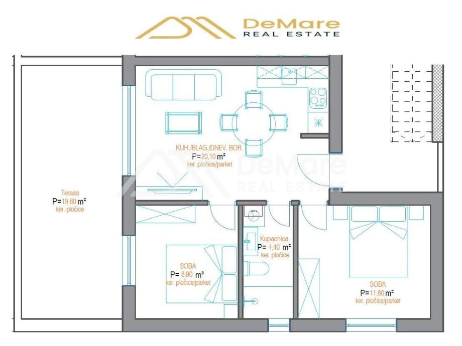 - dnevnog boravka s kuhinjom i blagovaonicom (20,10 m2)