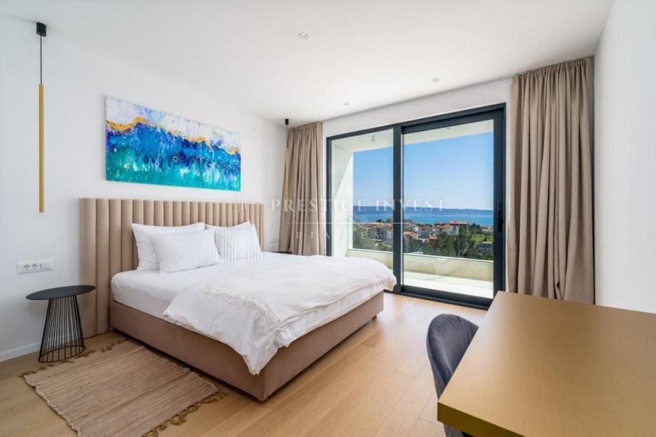 Unutarnje stepenice vode na gornji kat gdje se nalazi dodatan Dnevni boravak te tri spavaće sobe s vlastitim kupaonicama, od kojih dvije imaju balkon s pogledom na more. U potkrovlju je smještena i master spavaća soba s vlastitom terasom s koje se prostire pogled na more.
