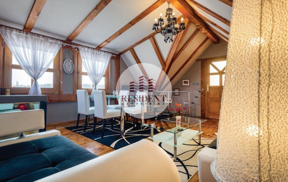- attic in which there is a spacious living room with a dining room, a bathroom and a bedroom