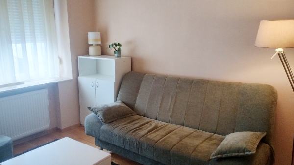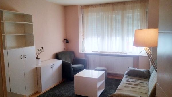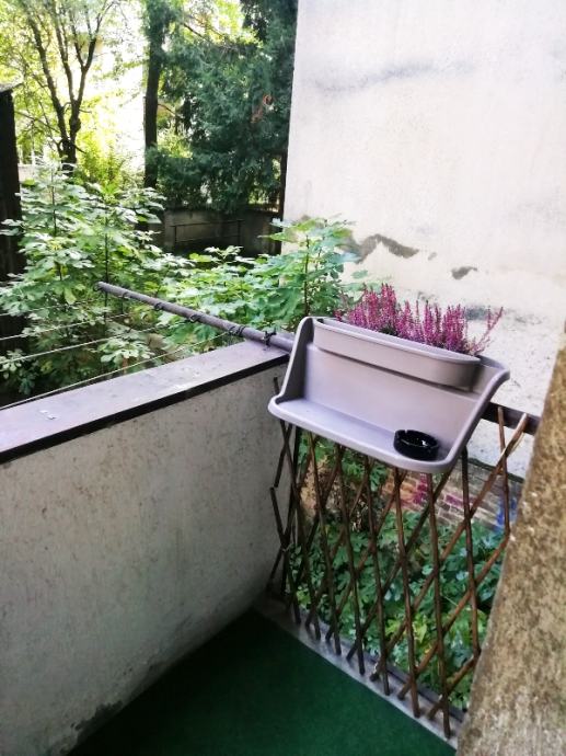Iznajmljujem lijepo uređen i potpuno opremljen manji dvosobni stan u visokom prizemlju uredne zgrade u Biankinijevoj ulici – mirnoj oazi između Martićeve i Zvonimirove.