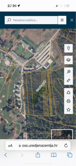 PARCELA U KOMADU,264 METRA DUGAČKA ŠIROKA 68 METARA,KRAJ SAMIH VILA I GOLF IGRALIŠTA!