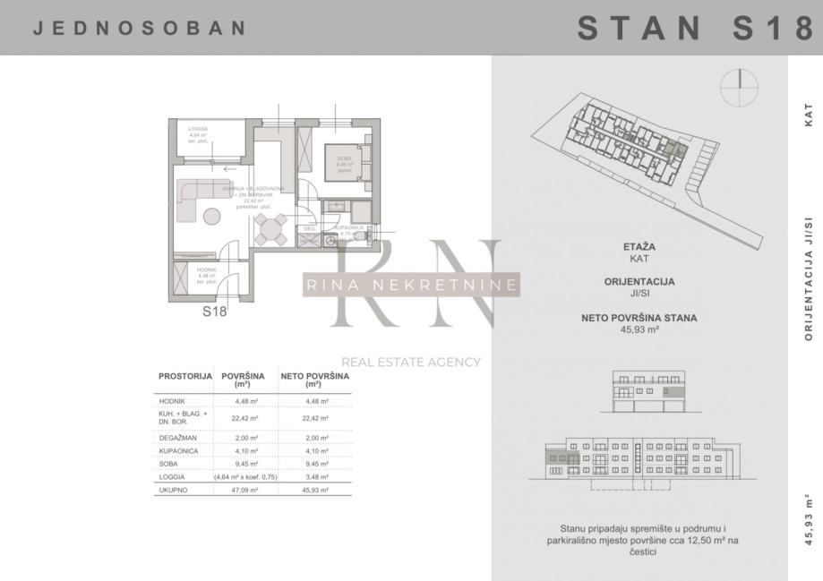 NOVOGRADNJA BLATO – S18 - 2-soban stan 45.93m2 sa loggiom – obavezno parkirno mjesto