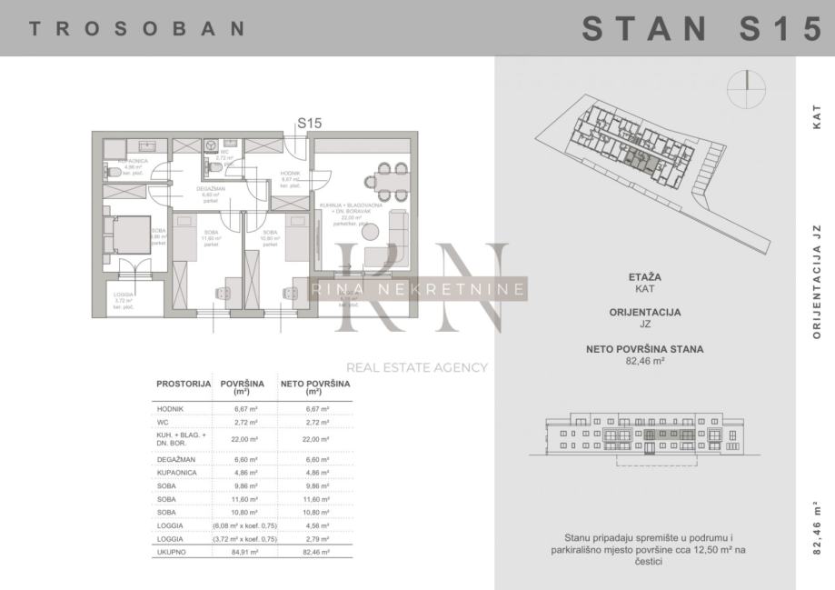 NOVOGRADNJA BLATO – S15 - 4-soban stan 82.46m2 sa loggiom – obavezno parkirno mjesto