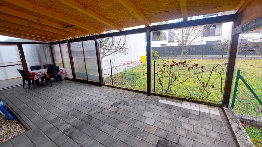 Proteže se ulaznim hodnikom prema dvije spavaće sobe, kupaonicu te nadovezuje na dnevni boravak, blagovaonicu i kuhinju koja ima izlaz u prostrani natkriven vrt. U nižem nivou nalazi se još jedna spavaća soba sa kupaonicom i walk-in ormarom. Po potrebi postoje četiri parkirna mjesta u sklopu vrta.