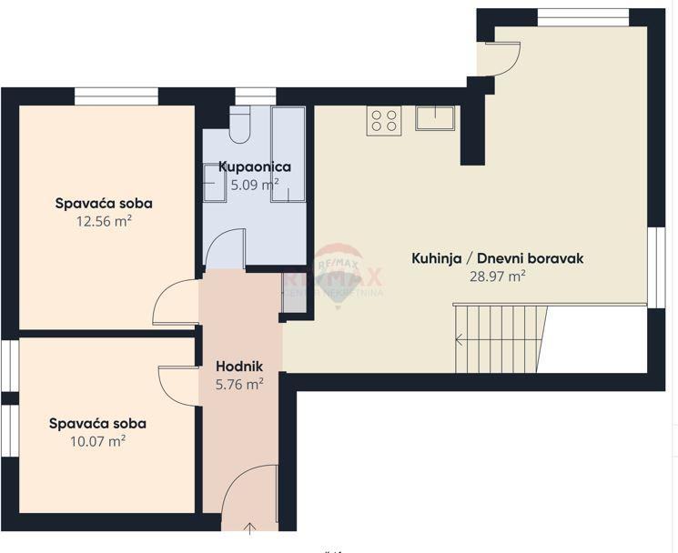 Nalazi se u blizini javnog prijevoza, vrtića, škole, trgovine, teretane i svih ostalih bitnih sadržaja.