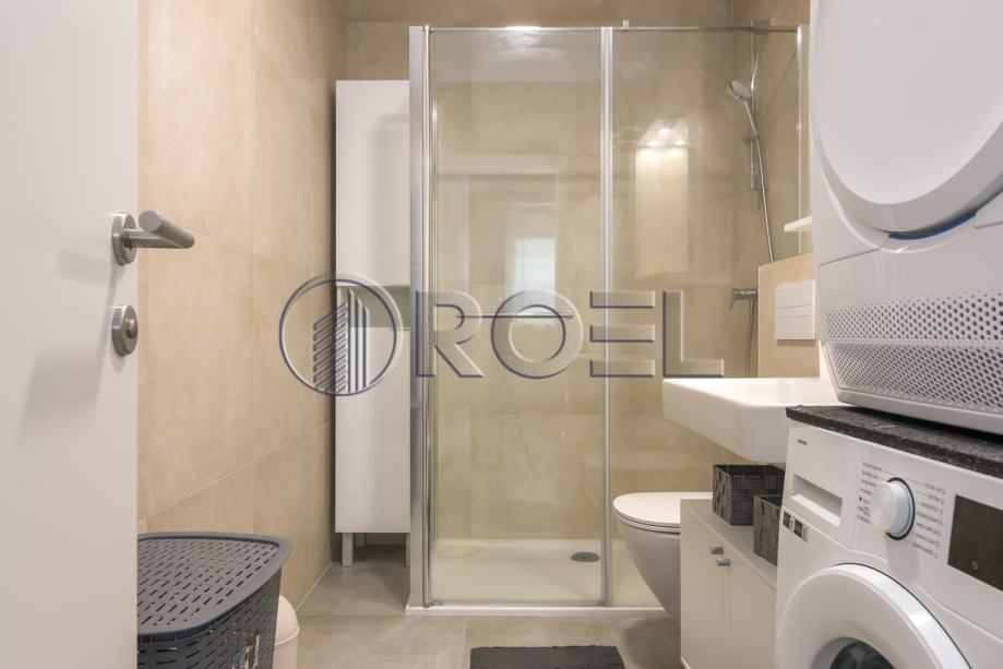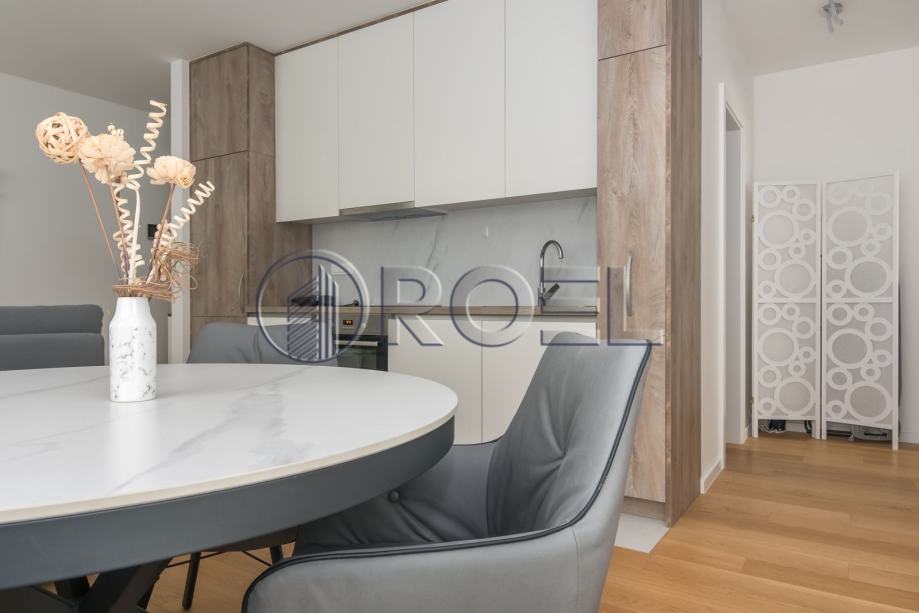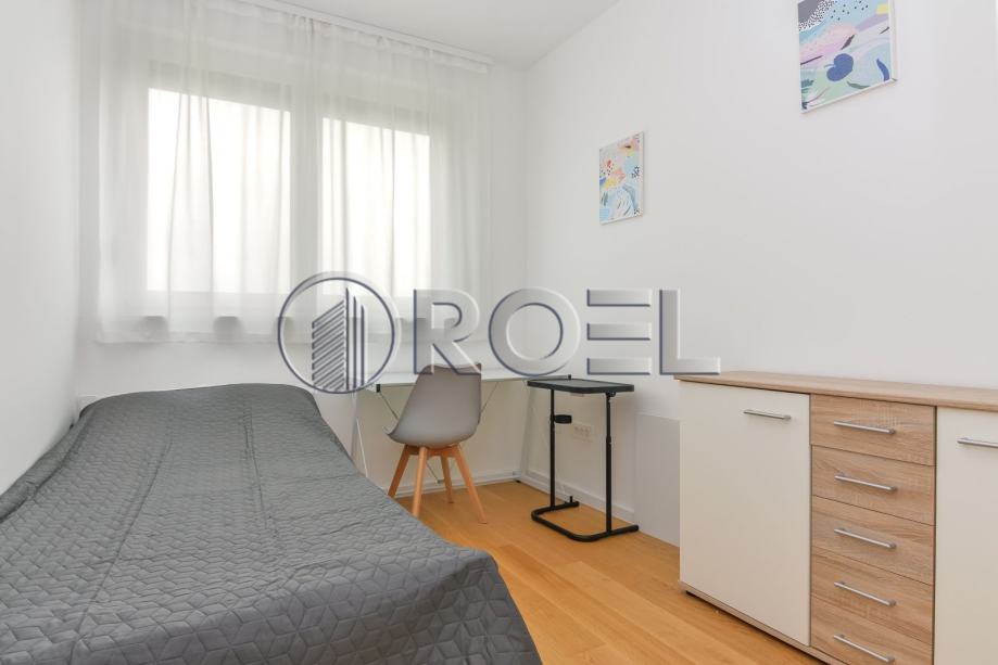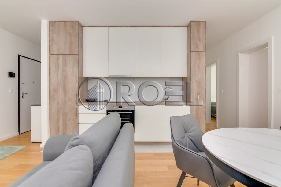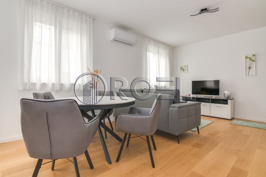Potpuno namješten trosobni stan za najam, površine 55 m², smješten na prvom katu nove zgrade izgrađene 2023. godine. Zgrada ima tri kata i energetski certifikat A+, što osigurava visoku učinkovitost i niže režije.
