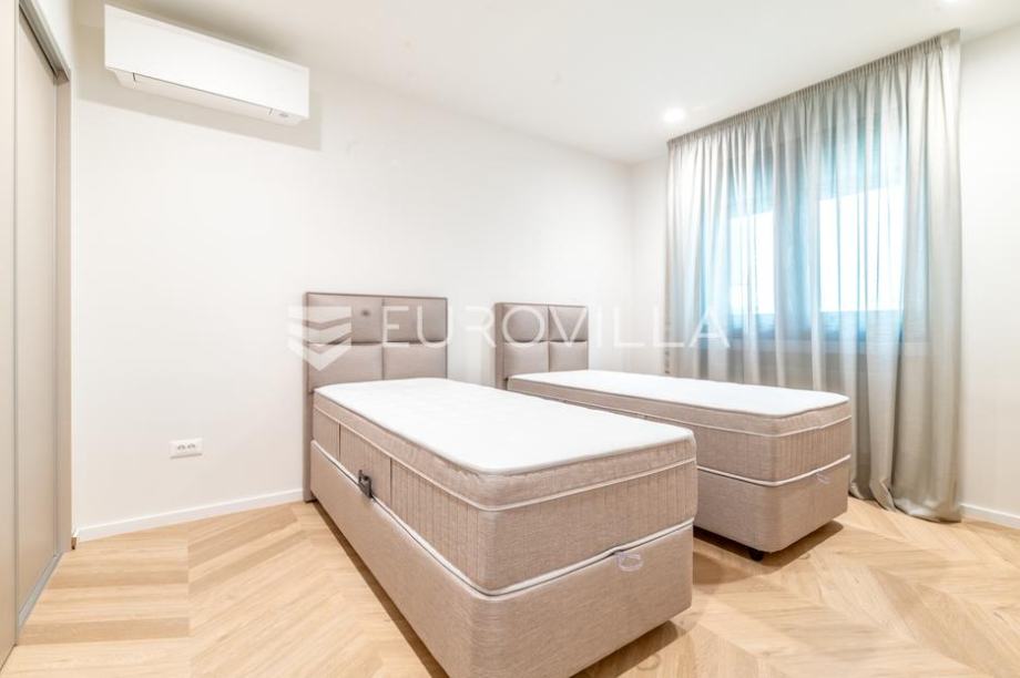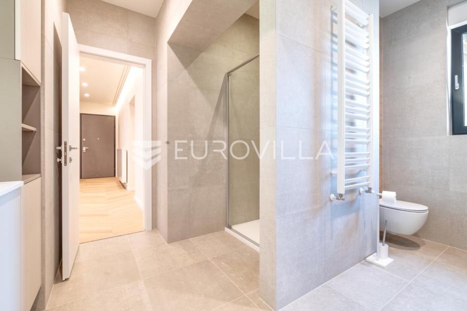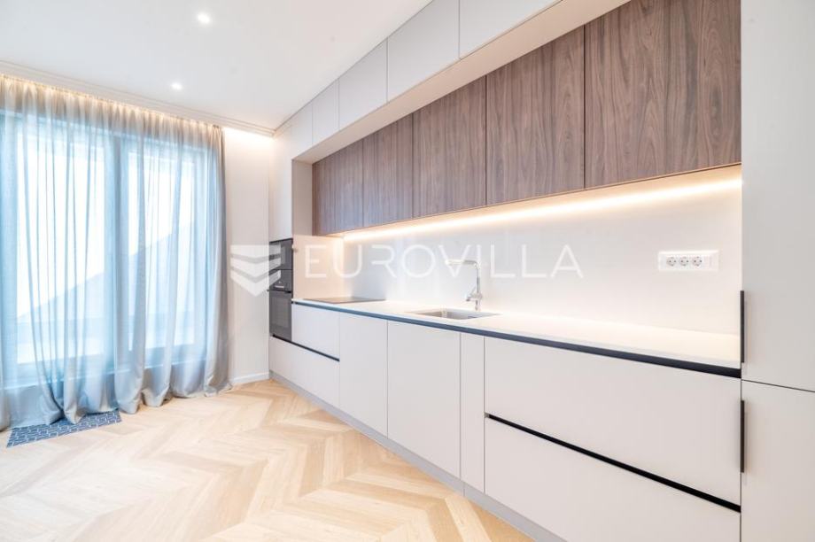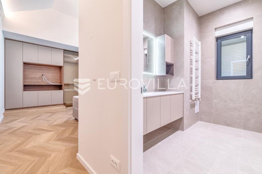 Stan je potpuno renoviran, dizajnerski namješten te spreman za useljenje. U svakoj sobi nalazi se klima uređaj. Moderan interijer s pažljivo odabranim materijalima odiše luksuzom, dok visoki stropovi osiguravaju obilje prirodnog svjetla.
