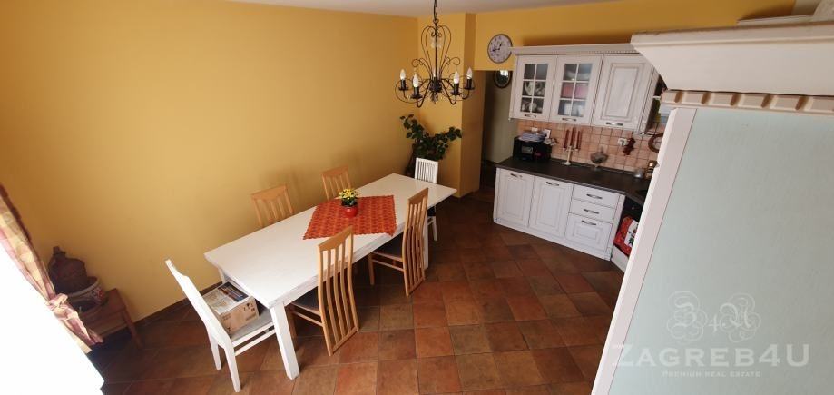 Kuća se sastoji od prizemlja u kojem se nalaze tri spavaće sobe, kupaonica, ostava, prostor za pranje rublja te prostrani hodnik. Na kat se, iz prizemlja, dolazi unutarnjim ili vanjskim stubištem budući da se u kuću može ući na dva zasebna ulaza. Na katu se nalazi prekrasna rustikalna kuhinja sa blagavaonicom, veliki dnevni boravak sa izlazom na balkon, kupaonica, smočnica, te hodnik iz kojega se izlazi na veliku natkrivenu terasu s pečenjarom.