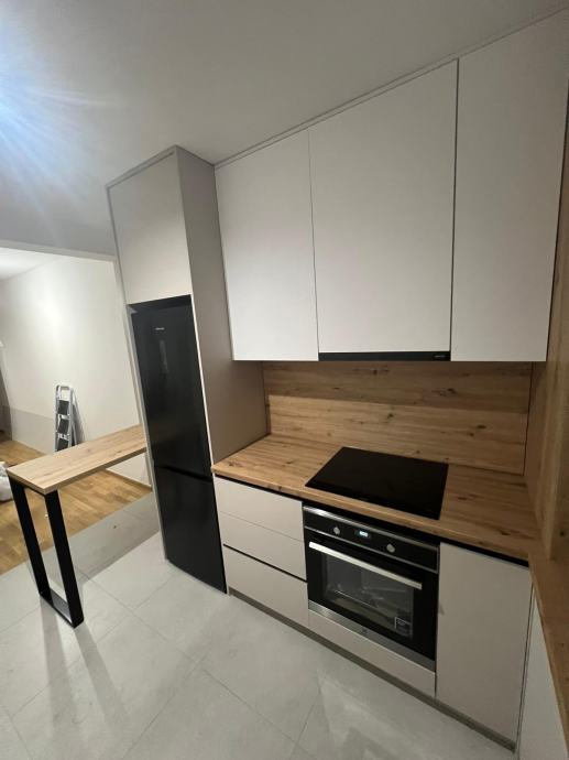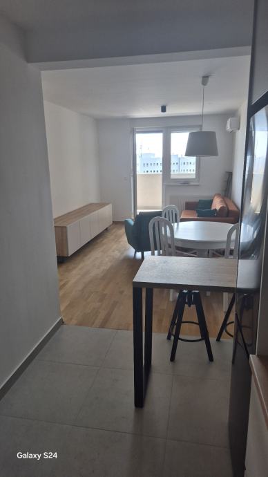 Novogradnja-prvi najam: dvosoban stan površine 58.78m2 na šestom katu zgrade s liftom (ukupno osam katova),Borongaj, Čavićeva ulica. Stan se sastoji od ulaznog hodnika, kuhinje, blagovaone i dnevnog boravka s izlazom na loggiu, spavaće sobe te kupaonice. Garazno parkrno mjesto.Orijentacija jug. Namješten i opremljen, indukcija, perilica posuđa, veša, pećnica... Grijanje na gradsku toplanu. Dostupan za razgledavanje i useljenje. Kućni ljubimci: ne.